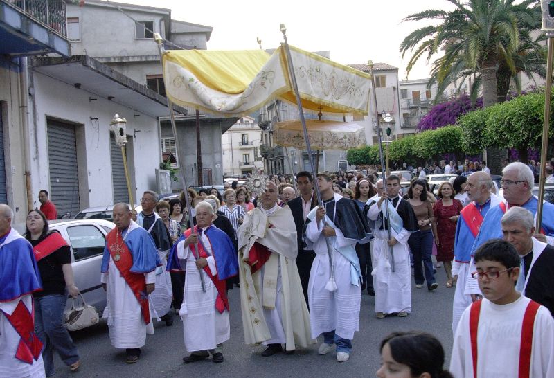 Maggio o Giugno: Festa del "Corpus Domini", Processione nel Centro Storico con visita delle Chiese e "Altarini", con lancio di fiori di ginestra e papaveri, in tutti i balconi sono esposte le coperte più belle di vari colori e disegni, tessute al telaio.
